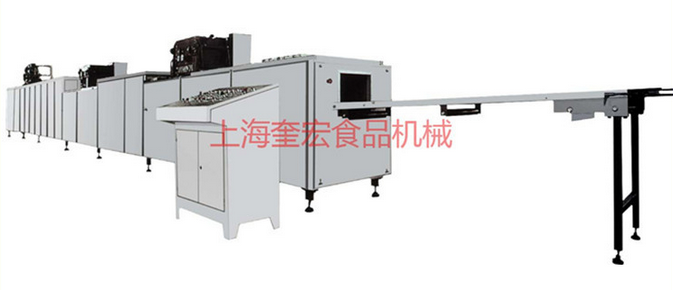 主要功能及用途 巧克力浇注成型机是一先进的用于生产巧克力产品的机器,机器集烘模、浇注、振动、冷却、脱模和输送的工序于一体,PLC全自动控制。可生产纯巧克力,夹心及上下左右双色巧克力产品,双头可单独或同时工作。